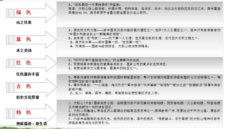 以養生度假、生態休閑為功能一體的中國高端生態度假村、皖西山地度假旅游目的地。